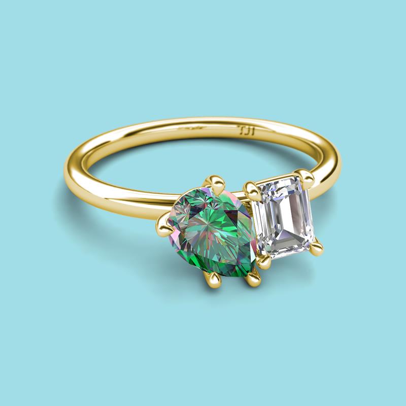 Pear Shape Lab Created Alexandrite & Emerald Shape Certified Lab Grown Diamond 2.63 ctw Four Prong Womens 2 Stone Duo Engagement Ring 18K Yellow Gold More Details ...