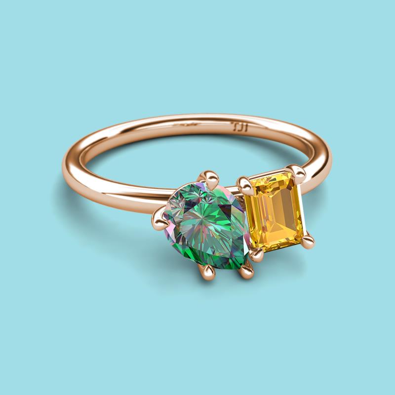 Pear Shape Lab Created Alexandrite & Emerald Shape Citrine 2.53 ctw Four Prong Womens 2 Stone Duo Engagement Ring 18K Rose Gold More Details ...