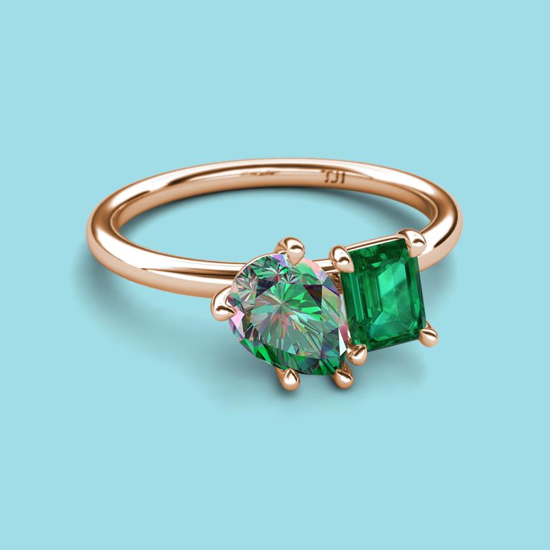 Pear Shape Lab Created Alexandrite & Emerald Shape Emerald 2.43 ctw Four Prong Womens 2 Stone Duo Engagement Ring 18K Rose Gold More Details ...