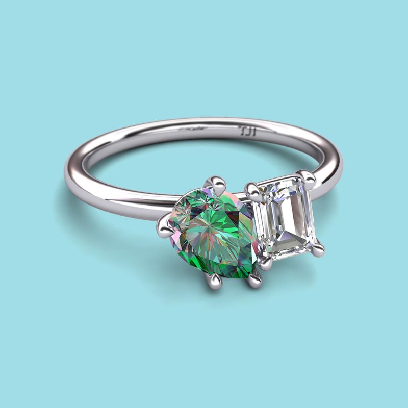 Find a beautiful symbol of everlasting love, with our new collection of duo two-stone ring. A pair of Pear Shape Lab Created Alexandrite shimmering alongside of a luminous Emerald Shape GIA Certified Diamond crafted beautifully is all set to represent two of you together.