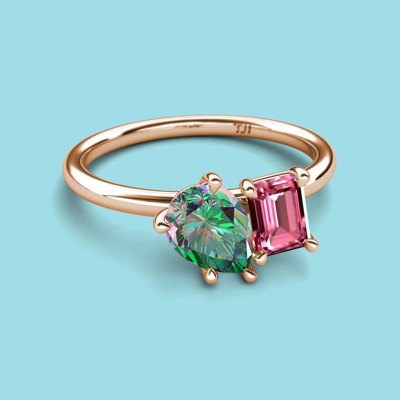 Pear Shape Lab Created Alexandrite & Emerald Shape Pink Tourmaline 2.73 ctw Four Prong Womens 2 Stone Duo Engagement Ring 18K Rose Gold More Details ...