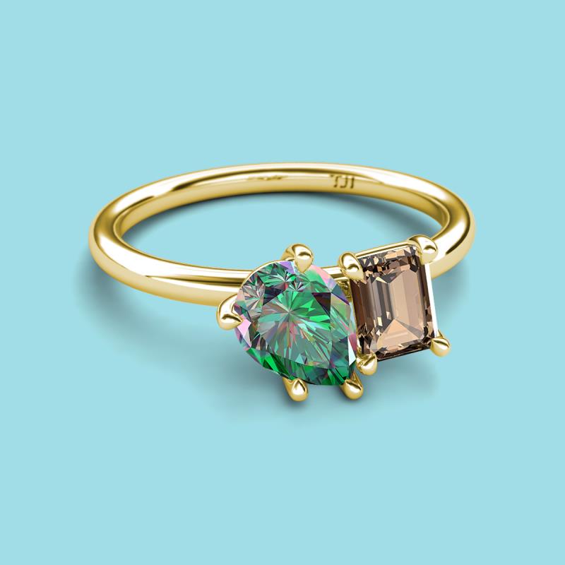Pear Shape Lab Created Alexandrite & Emerald Shape Smoky Quartz 2.63 ctw Four Prong Womens 2 Stone Duo Engagement Ring 14K Yellow Gold More Details ...