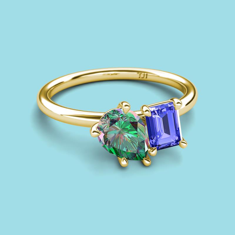 Pear Shape Lab Created Alexandrite & Emerald Shape Tanzanite 2.63 ctw Four Prong Womens 2 Stone Duo Engagement Ring 18K Yellow Gold More Details ...