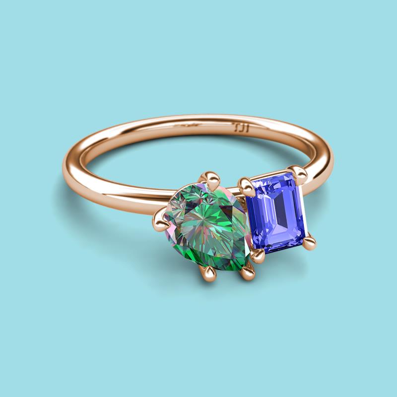 Pear Shape Lab Created Alexandrite & Emerald Shape Tanzanite 2.63 ctw Four Prong Womens 2 Stone Duo Engagement Ring 18K Rose Gold More Details ...