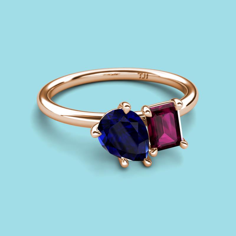 Pear Shape Lab Created Blue Sapphire & Emerald Shape Rhodolite Garnet 2.93 ctw Four Prong Womens 2 Stone Duo Engagement Ring 14K Rose Gold More Details ...