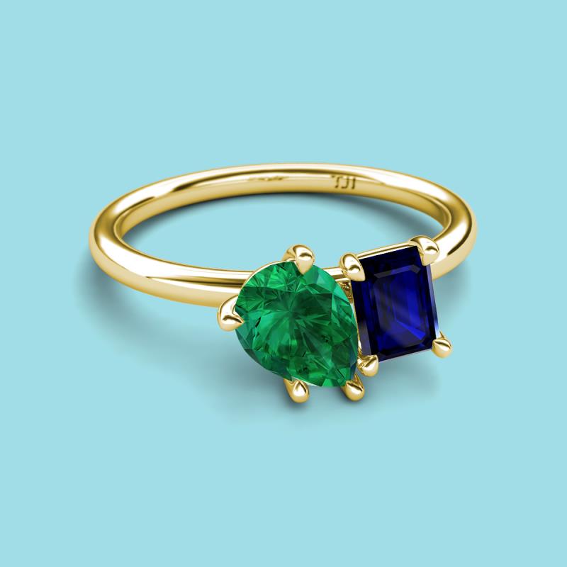 Pear Shape Lab Created Emerald & Emerald Shape Blue Sapphire 2.00 ctw Four Prong Womens 2 Stone Duo Engagement Ring 14K Yellow Gold More Details ...