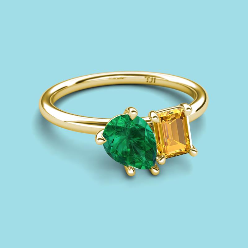 Pear Shape Lab Created Emerald & Emerald Shape Citrine 2.00 ctw Four Prong Womens 2 Stone Duo Engagement Ring 10K Yellow Gold More Details ...