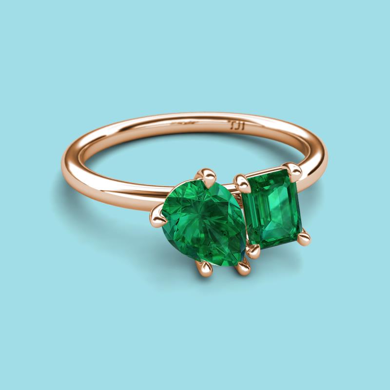 Pear Shape Lab Created Emerald & Emerald Shape Emerald 1.90 ctw Four Prong Womens 2 Stone Duo Engagement Ring 18K Rose Gold More Details ...