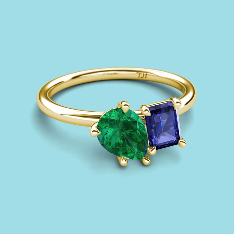 Find a beautiful symbol of everlasting love, with our new collection of duo two-stone ring. A pair of Pear Shape Lab Created Emerald shimmering alongside of a luminous Emerald Shape Iolite crafted beautifully is all set to represent two of you together.
