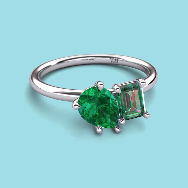 Find a beautiful symbol of everlasting love, with our new collection of duo two-stone ring. A pair of Pear Shape Lab Created Emerald shimmering alongside of a luminous Emerald Shape Lab Created Alexandrite crafted beautifully is all set to represent two of you together.