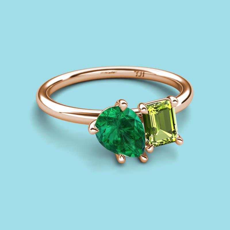 Pear Shape Lab Created Emerald & Emerald Shape Peridot 2.20 ctw Four Prong Womens 2 Stone Duo Engagement Ring 14K Rose Gold More Details ...