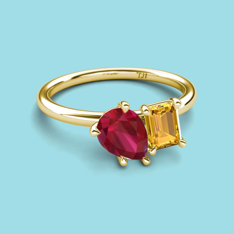 Pear Shape Lab Created Ruby & Emerald Shape Citrine 2.53 ctw Four Prong Womens 2 Stone Duo Engagement Ring 18K Yellow Gold More Details ...