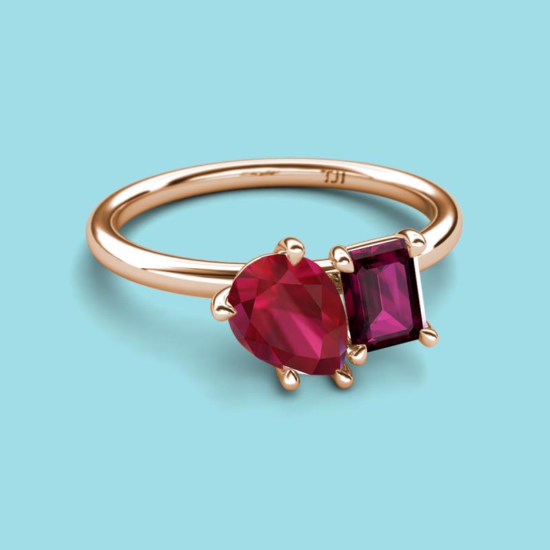 Pear Shape Lab Created Ruby & Emerald Shape Rhodolite Garnet 2.93 ctw Four Prong Womens 2 Stone Duo Engagement Ring 14K Rose Gold More Details ...