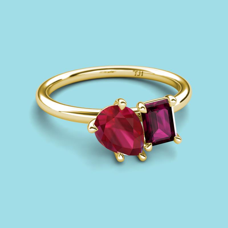 Pear Shape Lab Created Ruby & Emerald Shape Rhodolite Garnet 2.93 ctw Four Prong Womens 2 Stone Duo Engagement Ring 10K Yellow Gold More Details ...