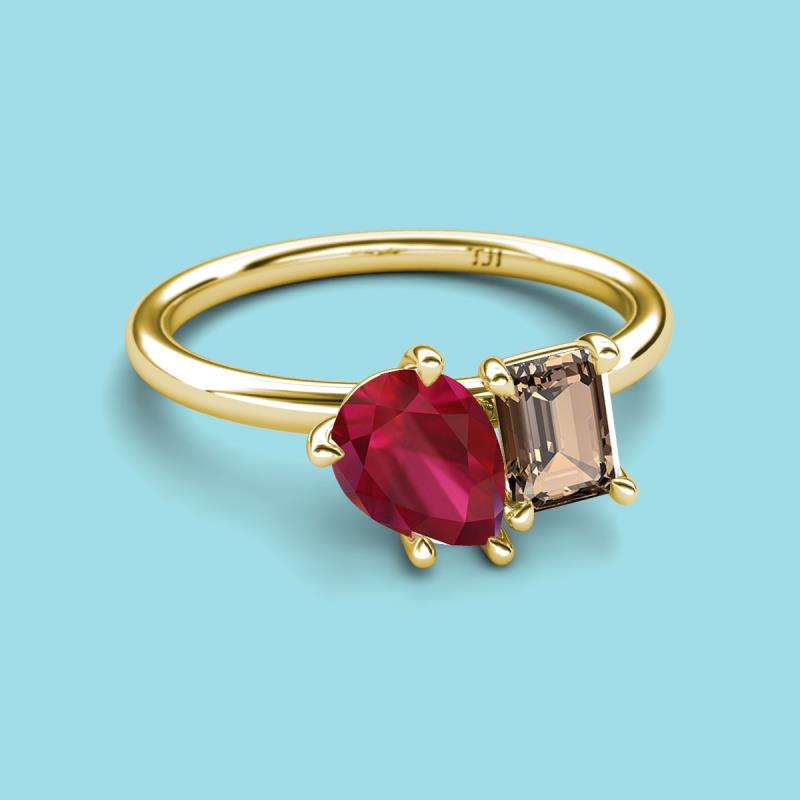 Pear Shape Lab Created Ruby & Emerald Shape Smoky Quartz 2.63 ctw Four Prong Womens 2 Stone Duo Engagement Ring 14K Yellow Gold More Details ...