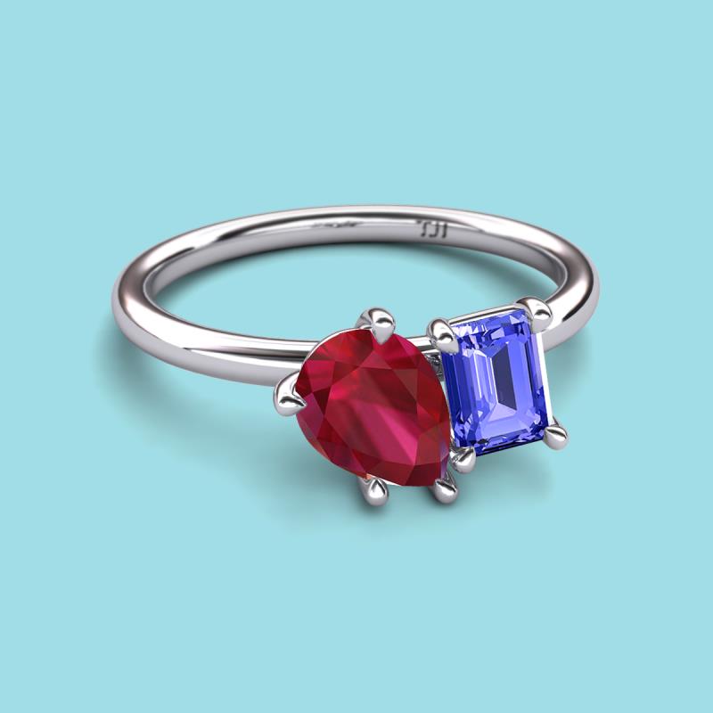 Pear Shape Lab Created Ruby & Emerald Shape Tanzanite 2.63 ctw Four Prong Womens 2 Stone Duo Engagement Ring 18K White Gold More Details ...