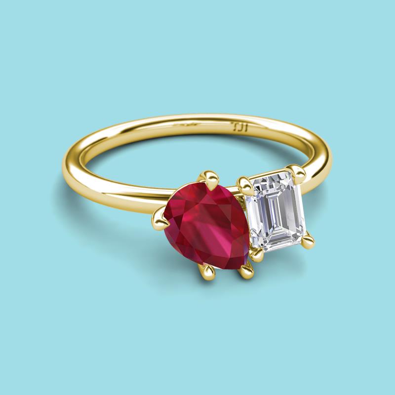 Pear Shape Lab Created Ruby & Emerald Shape White Sapphire 2.63 ctw Four Prong Womens 2 Stone Duo Engagement Ring 18K Yellow Gold More Details ...