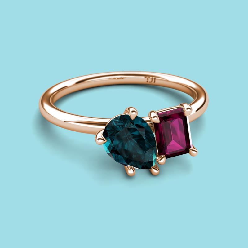 Pear Shape London Blue Topaz & Emerald Shape Rhodolite Garnet 2.95 ctw Four Prong Womens 2 Stone Duo Engagement Ring 10K Rose Gold More Details ...