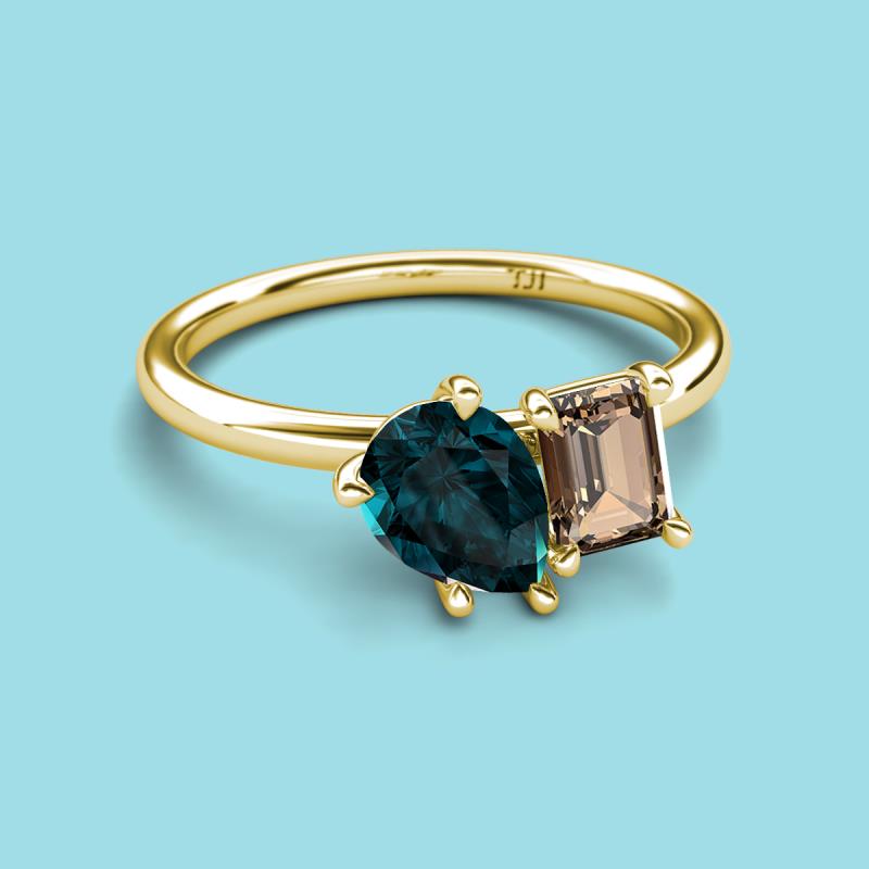 Pear Shape London Blue Topaz & Emerald Shape Smoky Quartz 2.65 ctw Four Prong Womens 2 Stone Duo Engagement Ring 14K Yellow Gold More Details ...