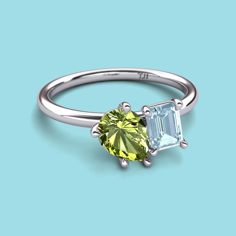 Pear Shape Peridot & Emerald Shape Aquamarine 2.40 ctw Four Prong Womens 2 Stone Duo Engagement Ring 10K White Gold More Details ...