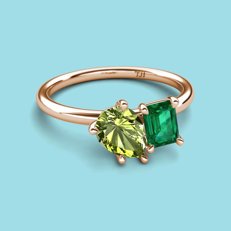 Pear Shape Peridot & Emerald Shape Emerald 2.30 ctw Four Prong Womens 2 Stone Duo Engagement Ring 18K Rose Gold More Details ...