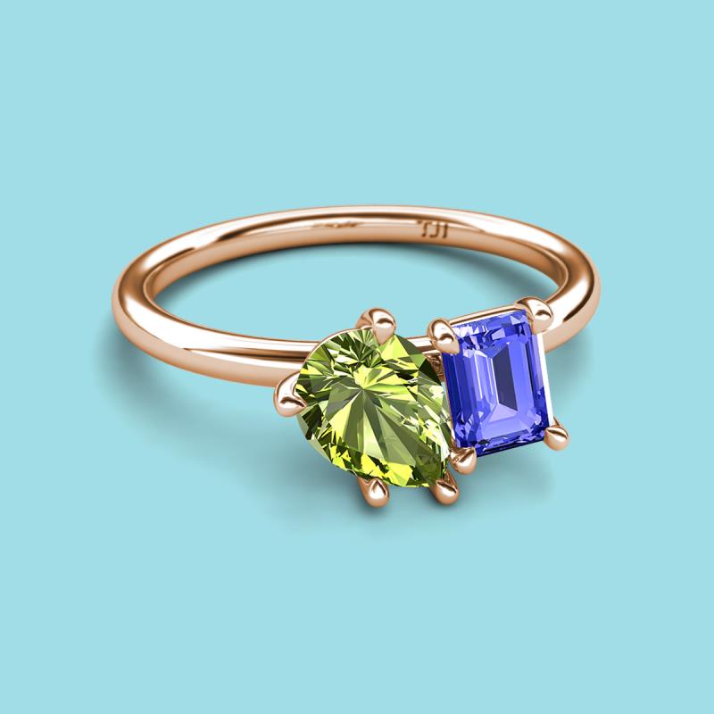 Pear Shape Peridot & Emerald Shape Tanzanite 2.50 ctw Four Prong Womens 2 Stone Duo Engagement Ring 14K Rose Gold More Details ...