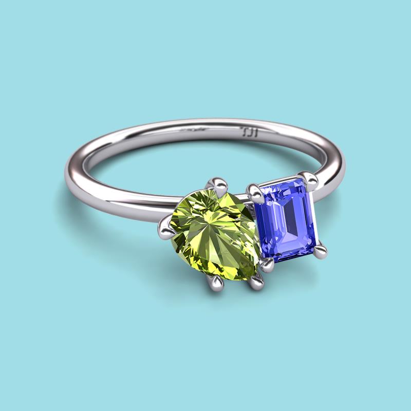 Pear Shape Peridot & Emerald Shape Tanzanite 2.50 ctw Four Prong Womens 2 Stone Duo Engagement Ring 10K White Gold More Details ...