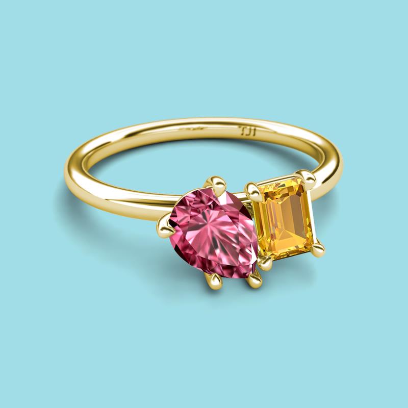 Pear Shape Pink Tourmaline & Emerald Shape Citrine 2.40 ctw Four Prong Womens 2 Stone Duo Engagement Ring 18K Yellow Gold More Details ...