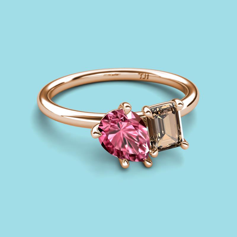 Pear Shape Pink Tourmaline & Emerald Shape Smoky Quartz 2.50 ctw Four Prong Womens 2 Stone Duo Engagement Ring 10K Rose Gold More Details ...