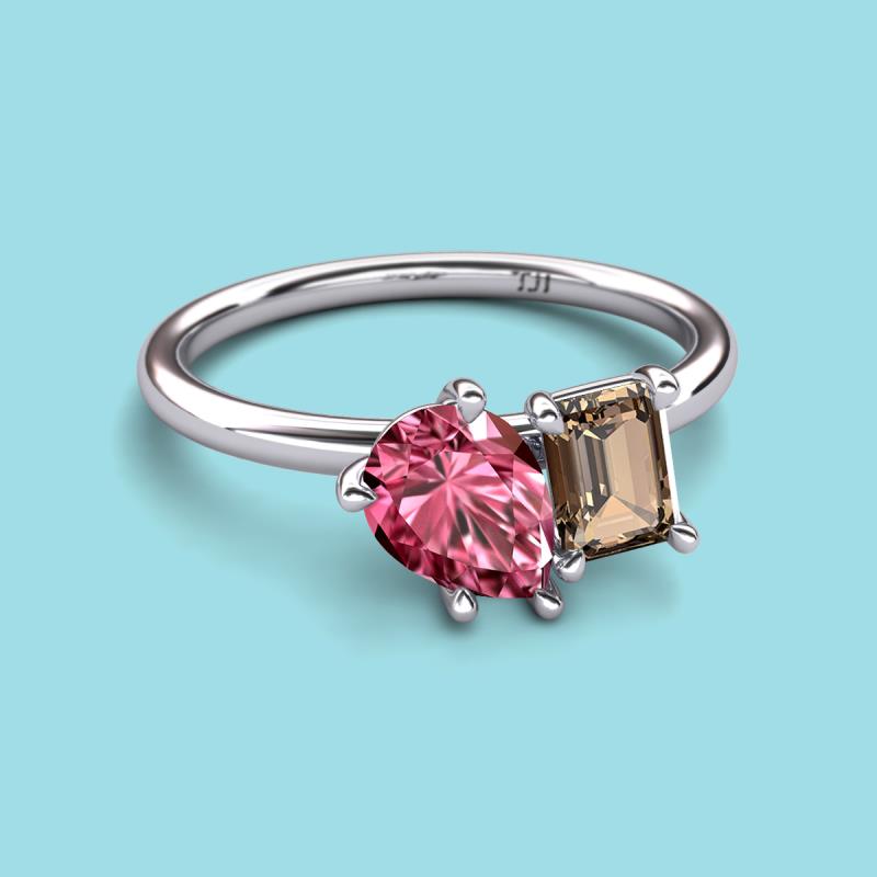 Pear Shape Pink Tourmaline & Emerald Shape Smoky Quartz 2.50 ctw Four Prong Womens 2 Stone Duo Engagement Ring Platinum More Details ...