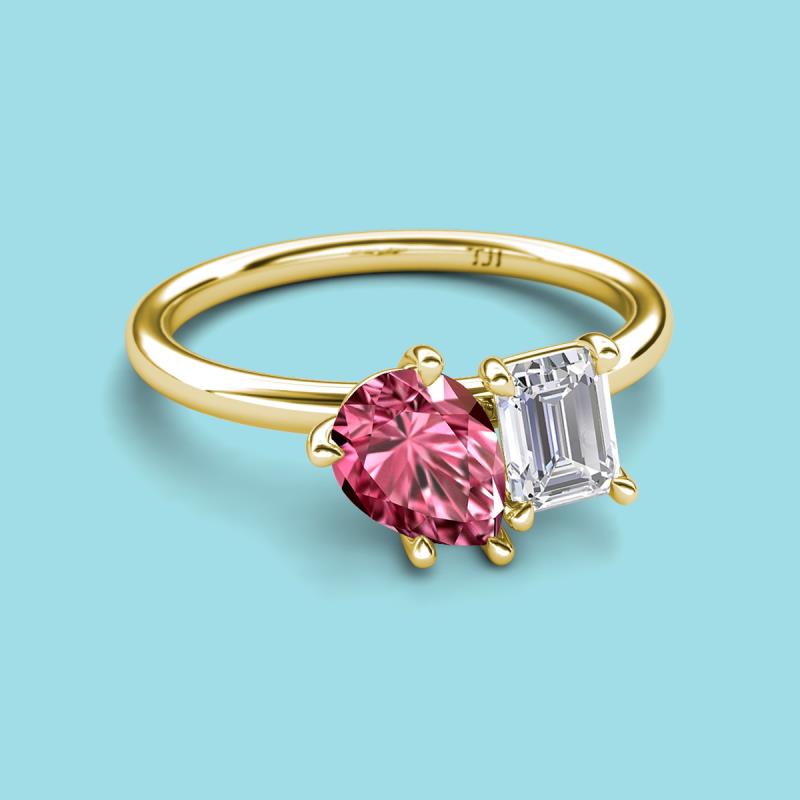 Pear Shape Pink Tourmaline & Emerald Shape White Sapphire 2.50 ctw Four Prong Womens 2 Stone Duo Engagement Ring 14K Yellow Gold More Details ...