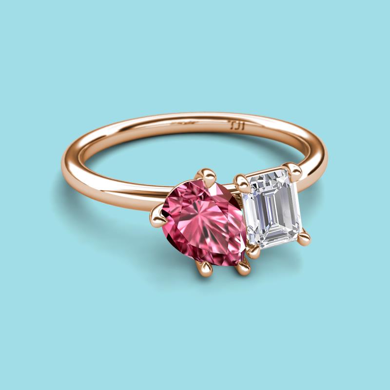 Pear Shape Pink Tourmaline & Emerald Shape White Sapphire 2.50 ctw Four Prong Womens 2 Stone Duo Engagement Ring 10K Rose Gold More Details ...