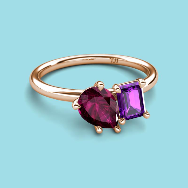 Pear Shape Rhodolite Garnet & Emerald Shape Amethyst 2.25 ctw Four Prong Womens 2 Stone Duo Engagement Ring 10K Rose Gold More Details ...