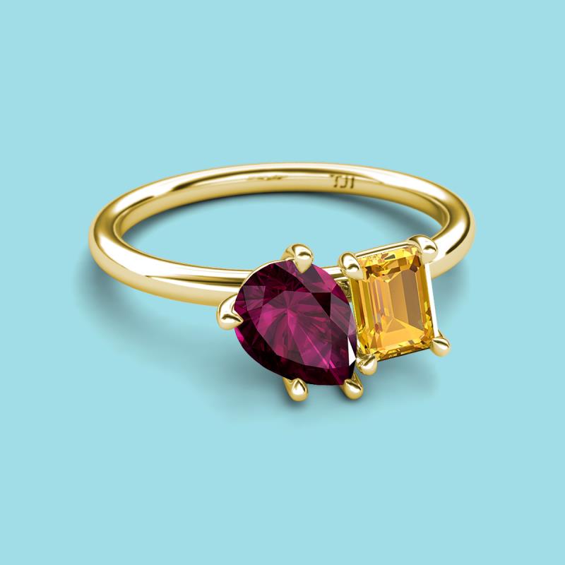 Pear Shape Rhodolite Garnet & Emerald Shape Citrine 2.35 ctw Four Prong Womens 2 Stone Duo Engagement Ring 18K Yellow Gold More Details ...