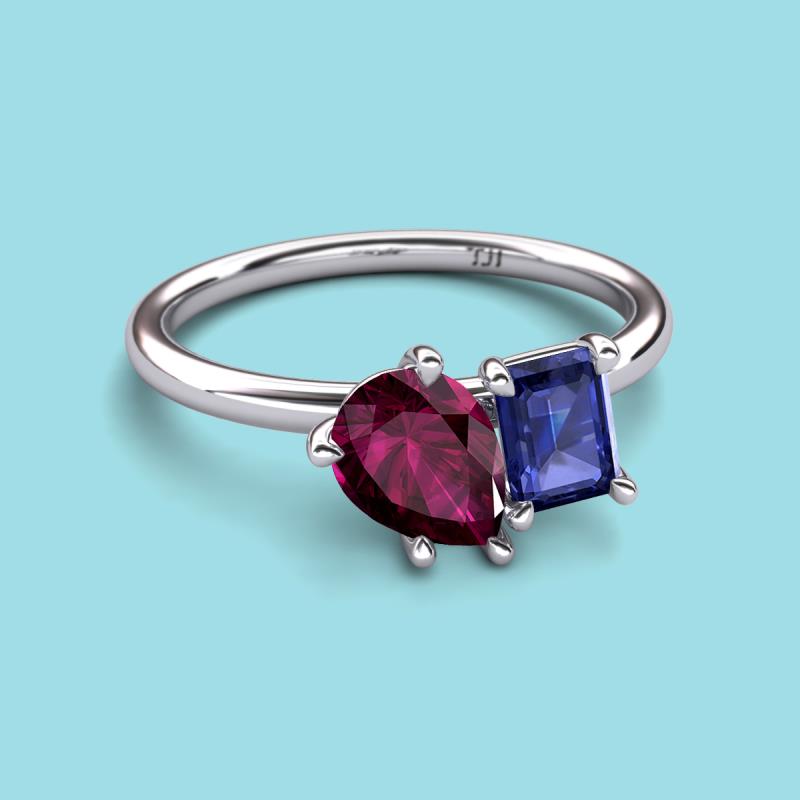 Pear Shape Rhodolite Garnet & Emerald Shape Iolite 2.40 ctw Four Prong Womens 2 Stone Duo Engagement Ring 10K White Gold More Details ...