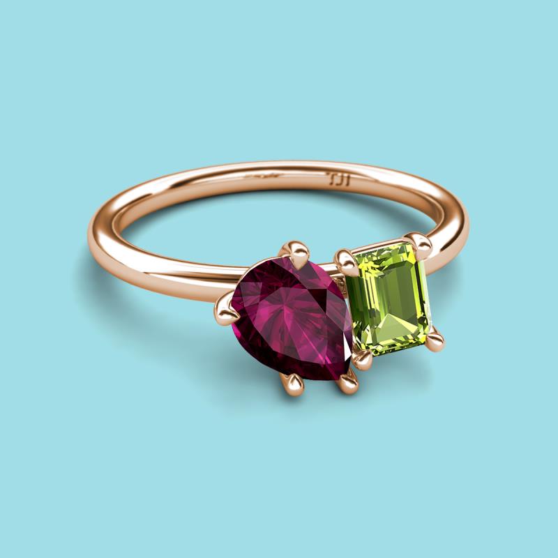 Pear Shape Rhodolite Garnet & Emerald Shape Peridot 2.55 ctw Four Prong Womens 2 Stone Duo Engagement Ring 18K Rose Gold More Details ...