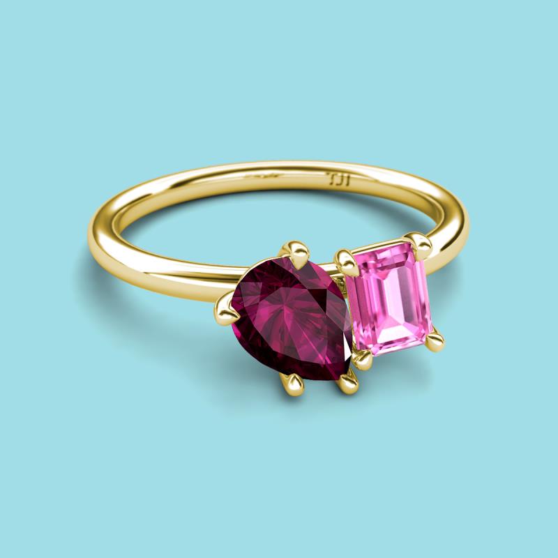 Pear Shape Rhodolite Garnet & Emerald Shape Pink Sapphire 2.45 ctw Four Prong Womens 2 Stone Duo Engagement Ring 18K Yellow Gold More Details ...