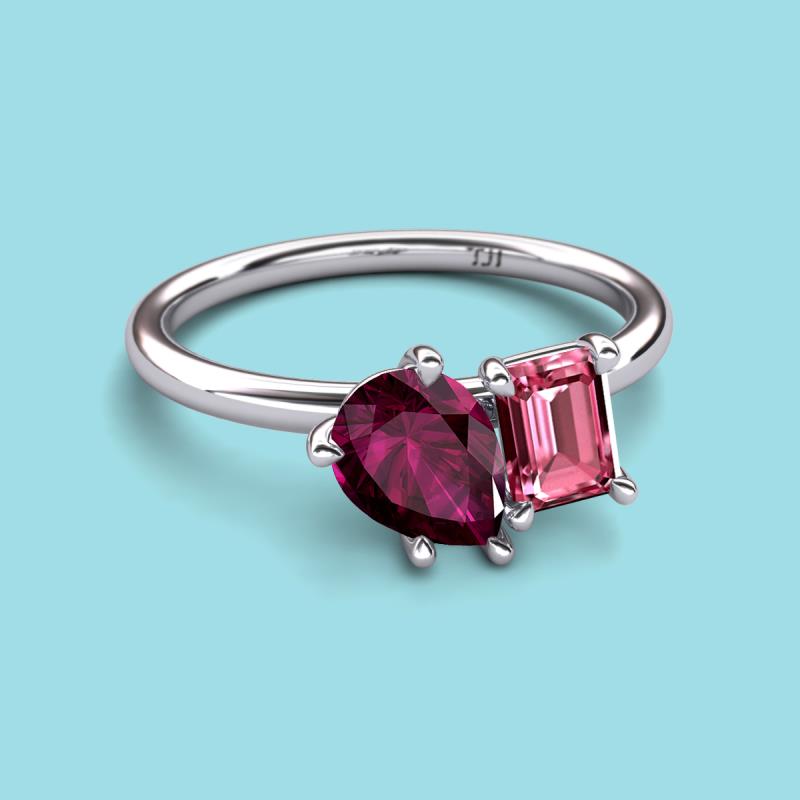 Pear Shape Rhodolite Garnet & Emerald Shape Pink Tourmaline 2.55 ctw Four Prong Womens 2 Stone Duo Engagement Ring Platinum More Details ...