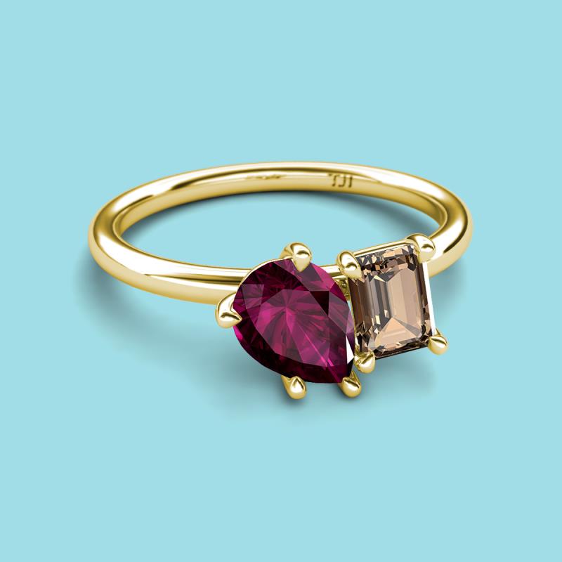 Pear Shape Rhodolite Garnet & Emerald Shape Smoky Quartz 2.45 ctw Four Prong Womens 2 Stone Duo Engagement Ring 14K Yellow Gold More Details ...
