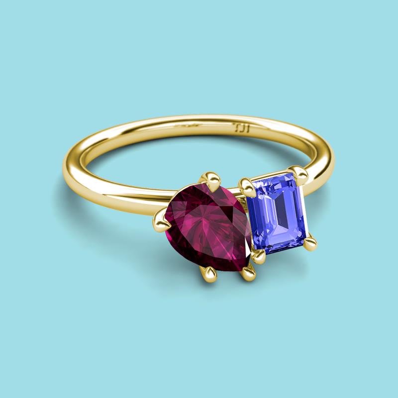 Pear Shape Rhodolite Garnet & Emerald Shape Tanzanite 2.45 ctw Four Prong Womens 2 Stone Duo Engagement Ring 18K Yellow Gold More Details ...