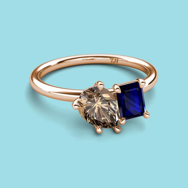 Pear Shape Smoky Quartz & Emerald Shape Blue Sapphire 2.10 ctw Four Prong Womens 2 Stone Duo Engagement Ring 14K Rose Gold More Details ...