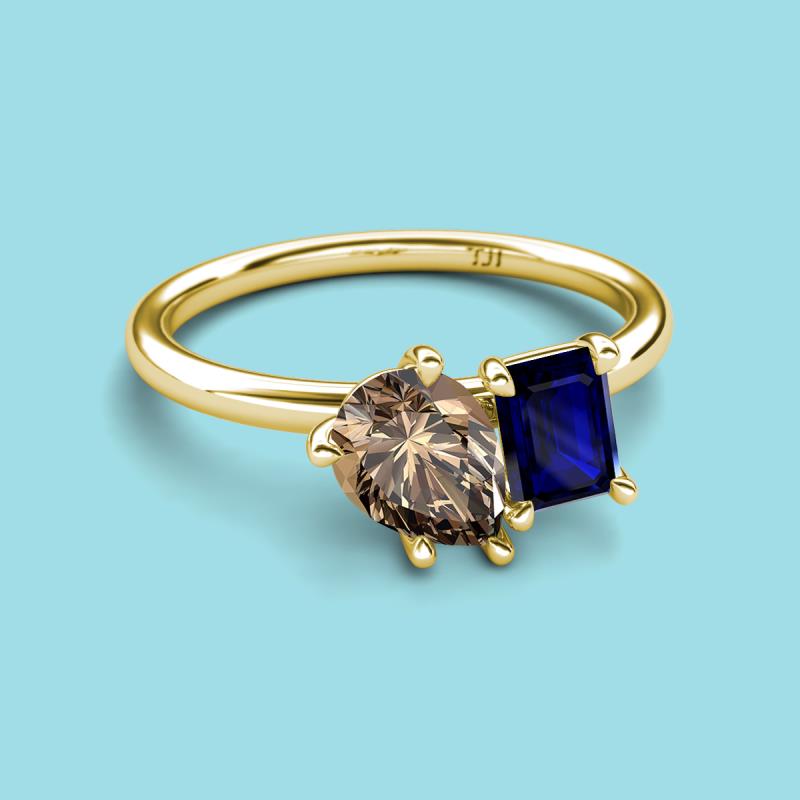 Pear Shape Smoky Quartz & Emerald Shape Blue Sapphire 2.10 ctw Four Prong Womens 2 Stone Duo Engagement Ring 18K Yellow Gold More Details ...