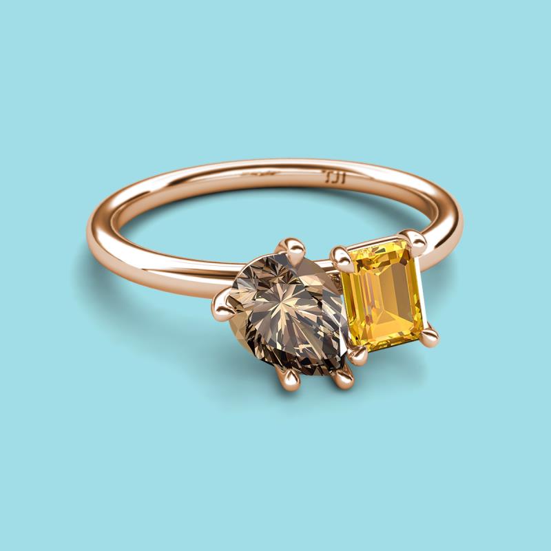 Pear Shape Smoky Quartz & Emerald Shape Citrine 2.10 ctw Four Prong Womens 2 Stone Duo Engagement Ring 14K Rose Gold More Details ...