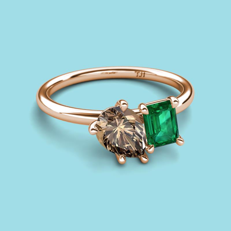 Pear Shape Smoky Quartz & Emerald Shape Emerald 2.00 ctw Four Prong Womens 2 Stone Duo Engagement Ring 18K Rose Gold More Details ...