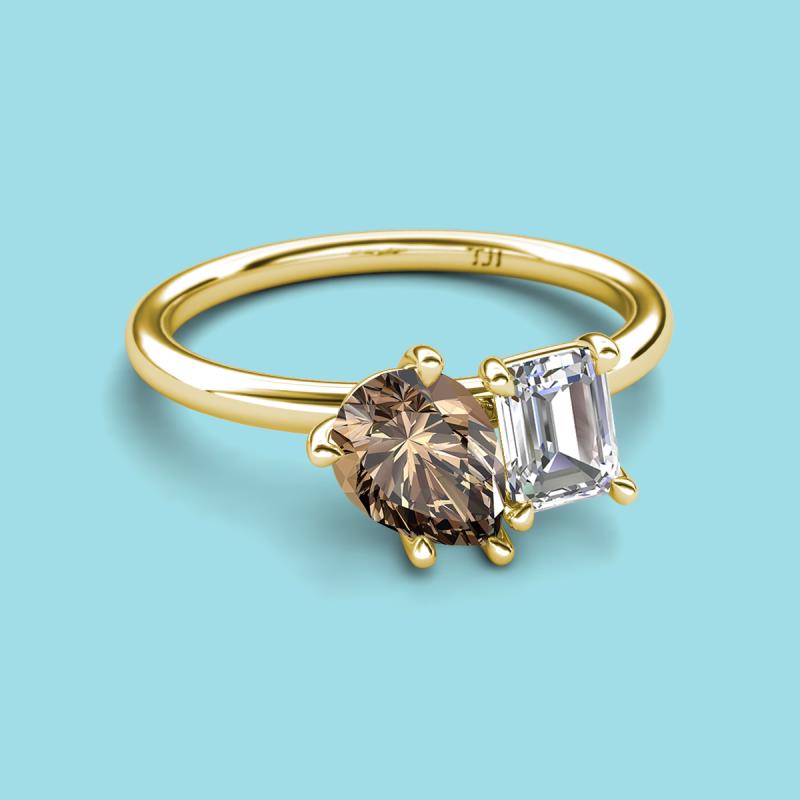Pear Shape Smoky Quartz & Emerald Shape GIA Certified Diamond 2.20 ctw Four Prong Womens 2 Stone Duo Engagement Ring 10K Yellow Gold More Details ...
