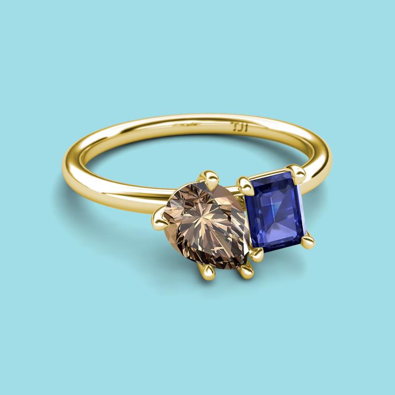 Pear Shape Smoky Quartz & Emerald Shape Iolite 2.15 ctw Four Prong Womens 2 Stone Duo Engagement Ring 14K Yellow Gold More Details ...