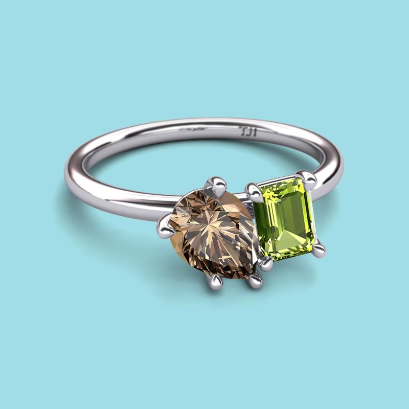 Find a beautiful symbol of everlasting love, with our new collection of duo two-stone ring. A pair of Pear Shape Smoky Quartz shimmering alongside of a luminous Emerald Shape Peridot crafted beautifully is all set to represent two of you together.