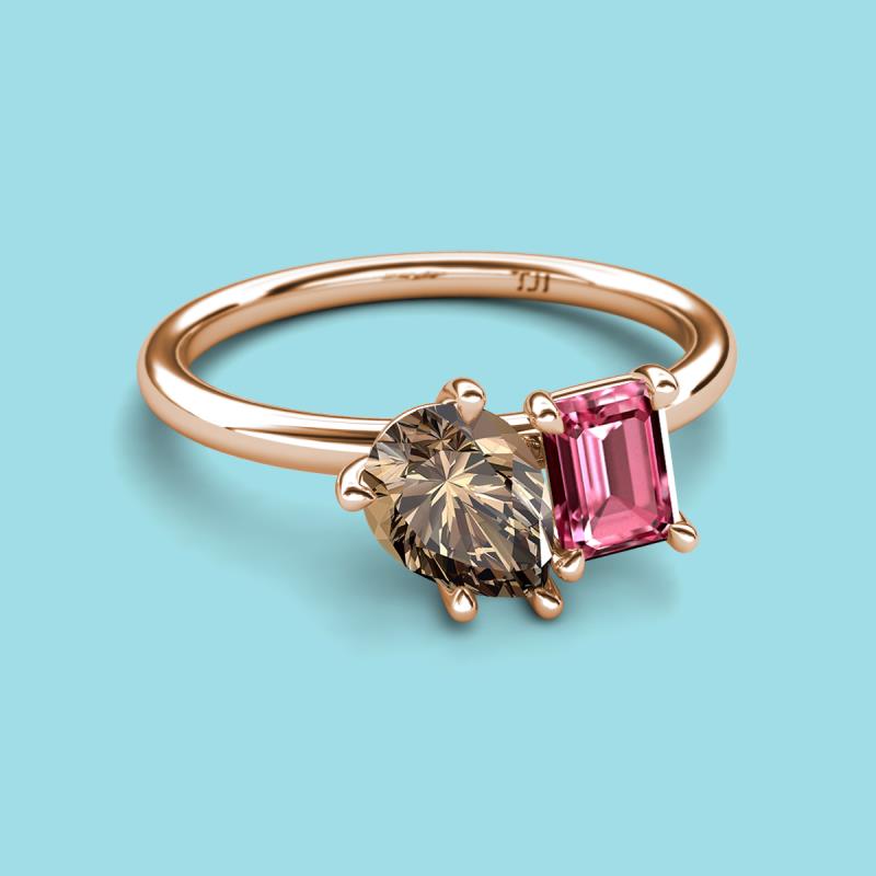 Pear Shape Smoky Quartz & Emerald Shape Pink Tourmaline 2.30 ctw Four Prong Womens 2 Stone Duo Engagement Ring 10K Rose Gold More Details ...