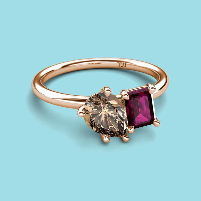 Pear Shape Smoky Quartz & Emerald Shape Rhodolite Garnet 2.50 ctw Four Prong Womens 2 Stone Duo Engagement Ring 14K Rose Gold More Details ...