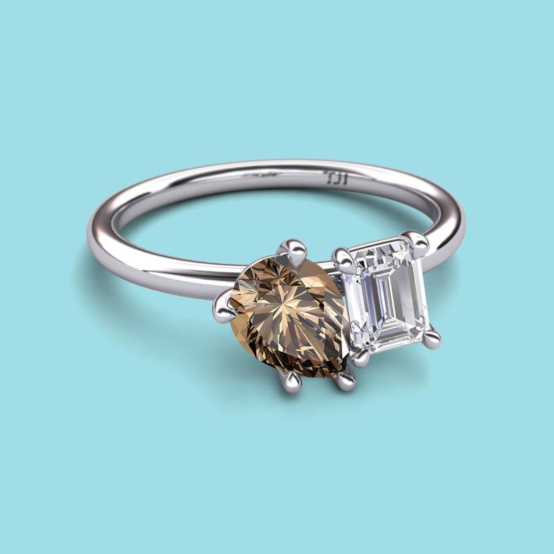 Find a beautiful symbol of everlasting love, with our new collection of duo two-stone ring. A pair of Pear Shape Smoky Quartz shimmering alongside of a luminous Emerald Shape White Sapphire crafted beautifully is all set to represent two of you together.